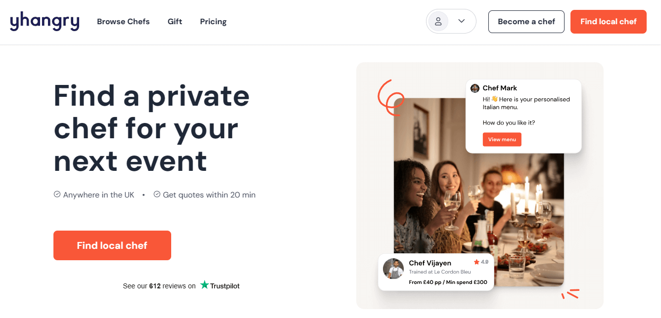 المشكلة → سوق تنافسي يحتاج إلى طلب مؤهلين مؤهلين في جميع أنحاء مدن المملكة المتحدة والمناسبات (طهاة خاصين).
