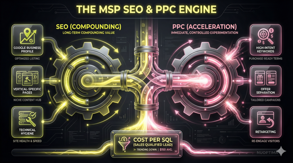SEO builds durable traffic and enterprise value. For MSPs, success requires hyper-local and vertical-specific execution.