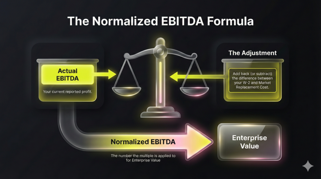 Private Equity firms calculate Normalized EBITDA by performing “add-backs.” They adjust for one-time or discretionary expenses to reflect repeatable performance. Crucially, they analyze owner compensation against the true replacement cost of the labor. If an owner accepts a low salary to inflate reported profit, the buyer adds back the difference between that pay and the market rate for a replacement CEO or technical lead. This ensures the valuation reflects scalable management overhead.